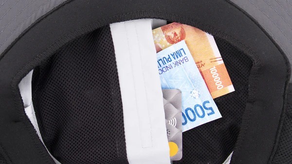 Inside top of the hat. Fits Legionnaire flap when not in use (or stash some rupiah for transport whilst in Indo).